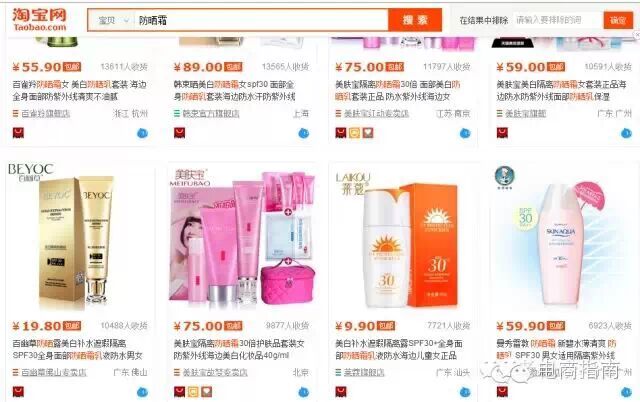 首先,打开淘宝搜索,我们就以“防晒霜”这个关键词为例。